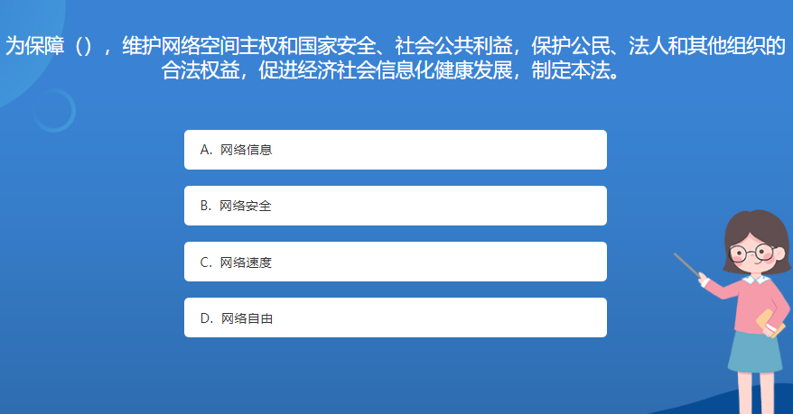 科普星空体育官网入口网站問答:為保障(),維護網絡空間主權和國家安全、社會公共利益,保護公民、法人和其他組織的合法權益,促進經濟社會信息化健康發展,製定本法。