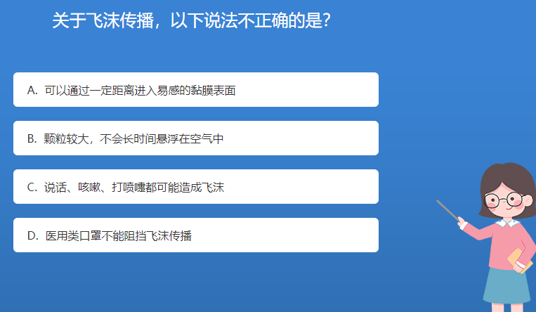 科普星空体育官网入口网站問答:關於飛沫傳播,以下說法不正確的是?
