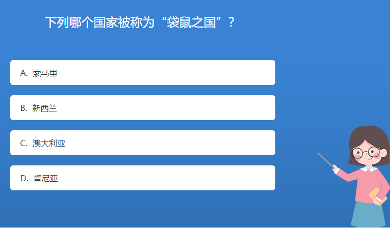 科普星空体育官网入口网站問答:下列哪個國家被稱為“袋鼠之國”?