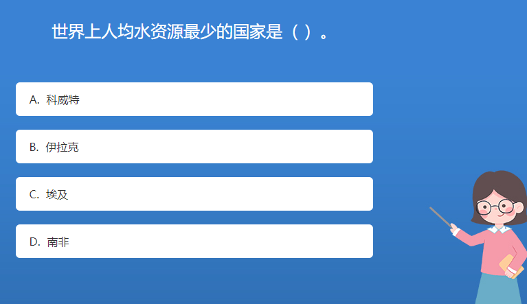 科普星空体育官网入口网站問答:世界上人均水資源最少的國家是( )。