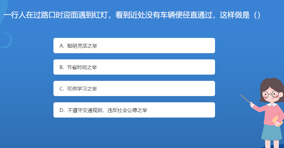 科普星空体育官网入口网站問答:一行人在過路口時迎麵遇到紅燈,看到近處沒有車輛便徑直通過,這樣做是()