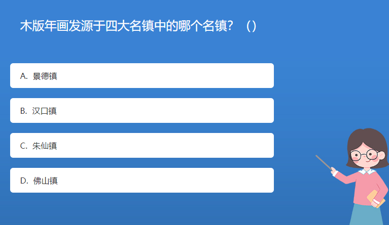 科普星空体育官网入口网站問答:木版年畫發源於四大名鎮中的哪個名鎮?()