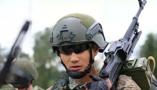 佩戴複合材料防彈頭盔的步兵
