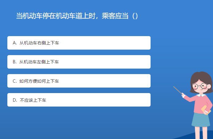 科普星空体育官网入口网站問答:當機動車停在機動車道上時,乘客應當()