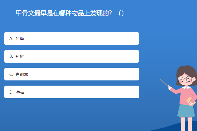 科普星空体育官网入口网站問答:甲骨文最早是在哪種物品上發現的?()