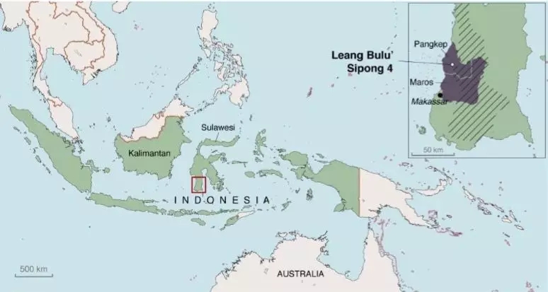 在很長的一段時間裏,人們曾普遍認為岩畫藝術最早出現在距今3.5~4萬年的歐洲。直到2014年10月,澳大利亞格裏菲斯大學的Maxime Aubert和Adam Brumm團隊在《自然》期刊發表論文,宣布他們在蘇拉威西島上發現了最古老的人手形狀壁畫(3.99萬年前),表明在那個時期,亞洲也出現了同樣璀璨的藝術文明,從而顛覆了人們一直很來的觀念。而如今,他們的團隊又一次在《自然》上發文,刷新了我們對人類藝術曆史的認知。