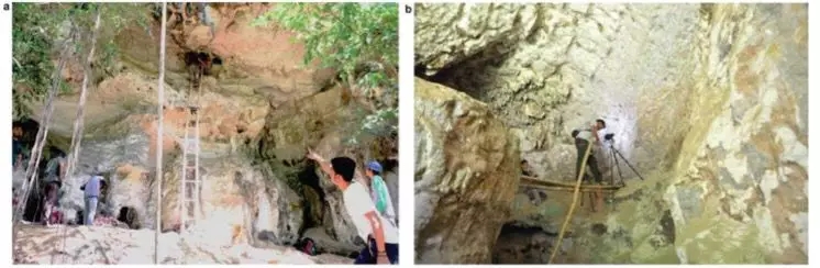 穿過距地麵7.5米高的入口,就能夠看見Leang Bulu' Sipong 4中的壁畫。來源:Nature