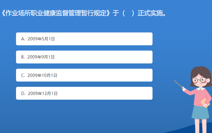 科普星空体育官网入口网站問答:《作業場所職業健康監督管理暫行規定》於( )正式實施。