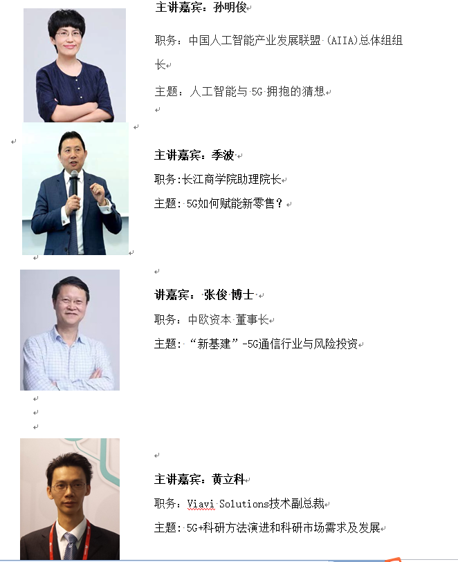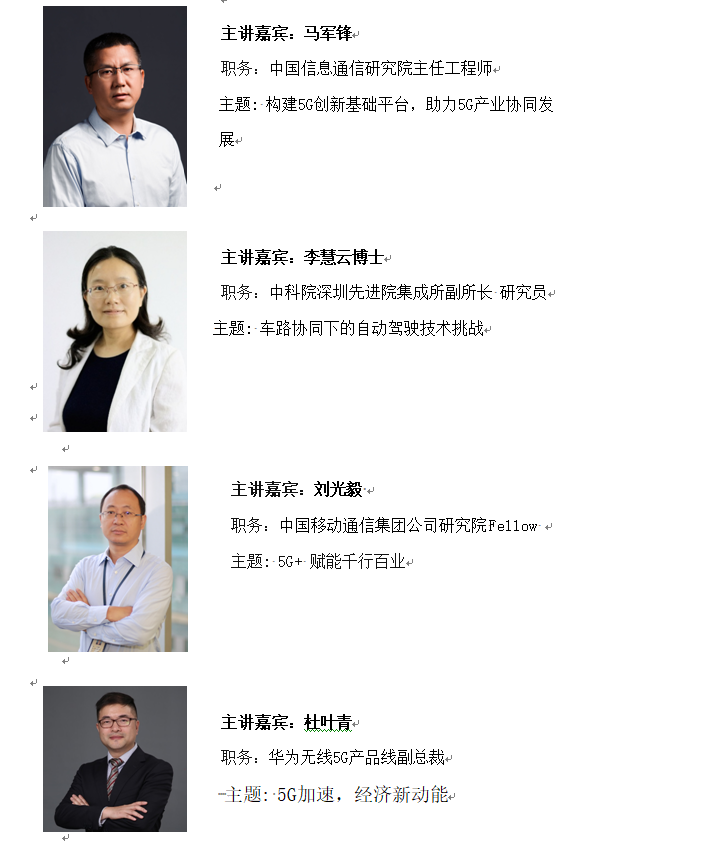 | 16:30-17:55 | 圓桌論壇 主題: 5G試驗網應用 主持人: 馬軍鋒 中國信通院 |