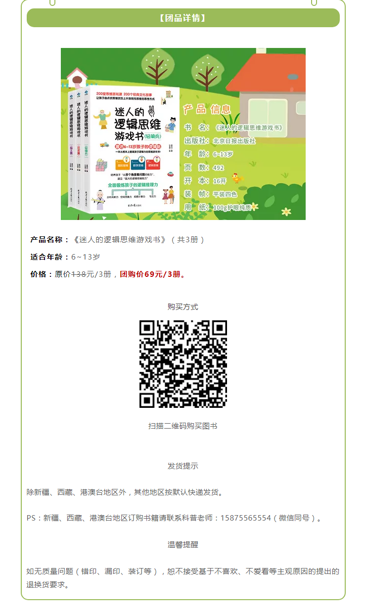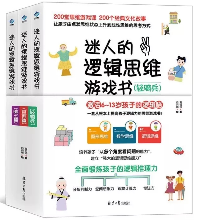 給大家推薦《迷人的邏輯思維遊戲書(shu) 》,全套書(shu) 共三冊(ce) ,這是一套數學遊戲書(shu) ,它不像普通的習(xi) 題冊(ce) 滿滿的都是題,由插畫師插入了精心設計的插圖,是專(zhuan) 門針對6-13歲年齡段兒(er) 童而設計。這套書(shu) 難度適宜,貼合實際,縱貫中外文學,使得邏輯思維的學習(xi) 也變得更加輕鬆愉快,而且還能達到文理兼修的效果。是6-13歲孩子開啟邏輯思維訓練的不二選擇!