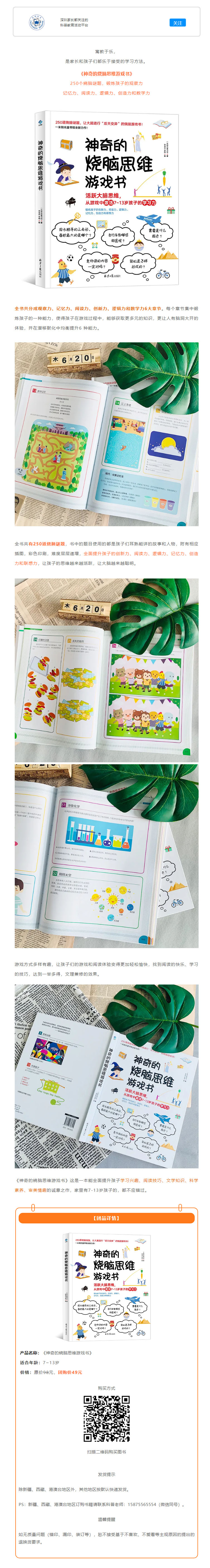 科普書籍丨《神奇的燒腦思維遊戲書》活躍大腦思維,從遊戲中激活7~13歲孩子的學習力