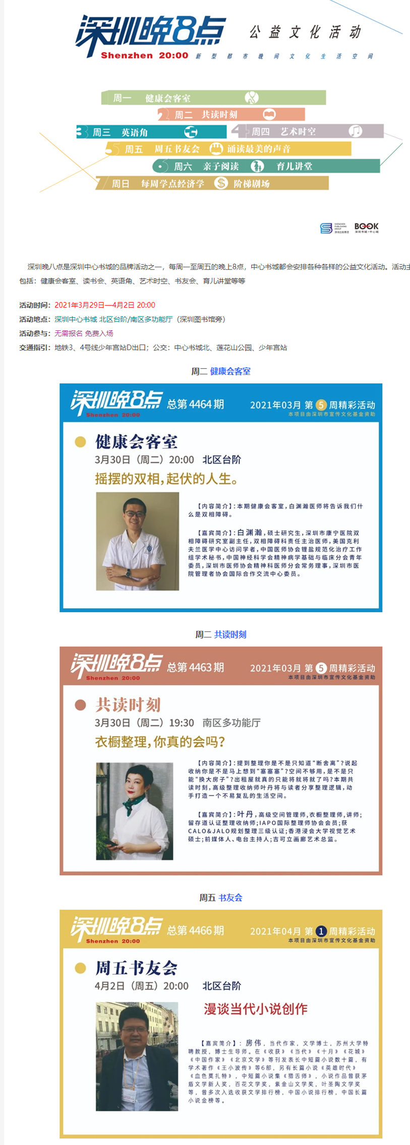 【深圳晚8點】深圳中心書城一周文化活動指南(3.29-4.4)