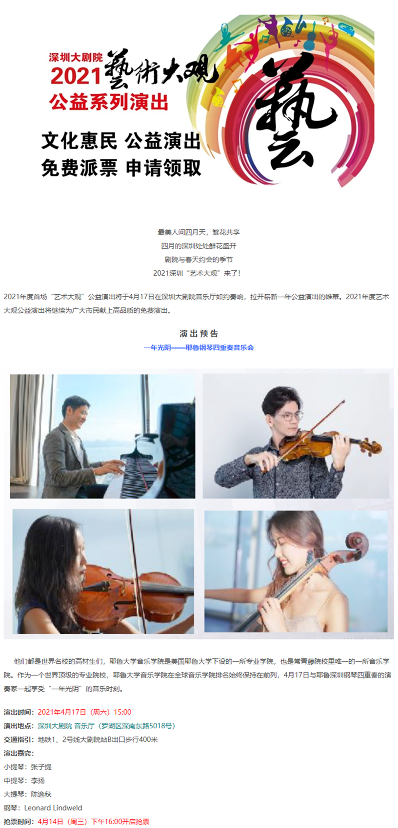 【免費領票】2021藝術大觀公益演出重磅回歸!這個4月與您相約深圳大劇院!
