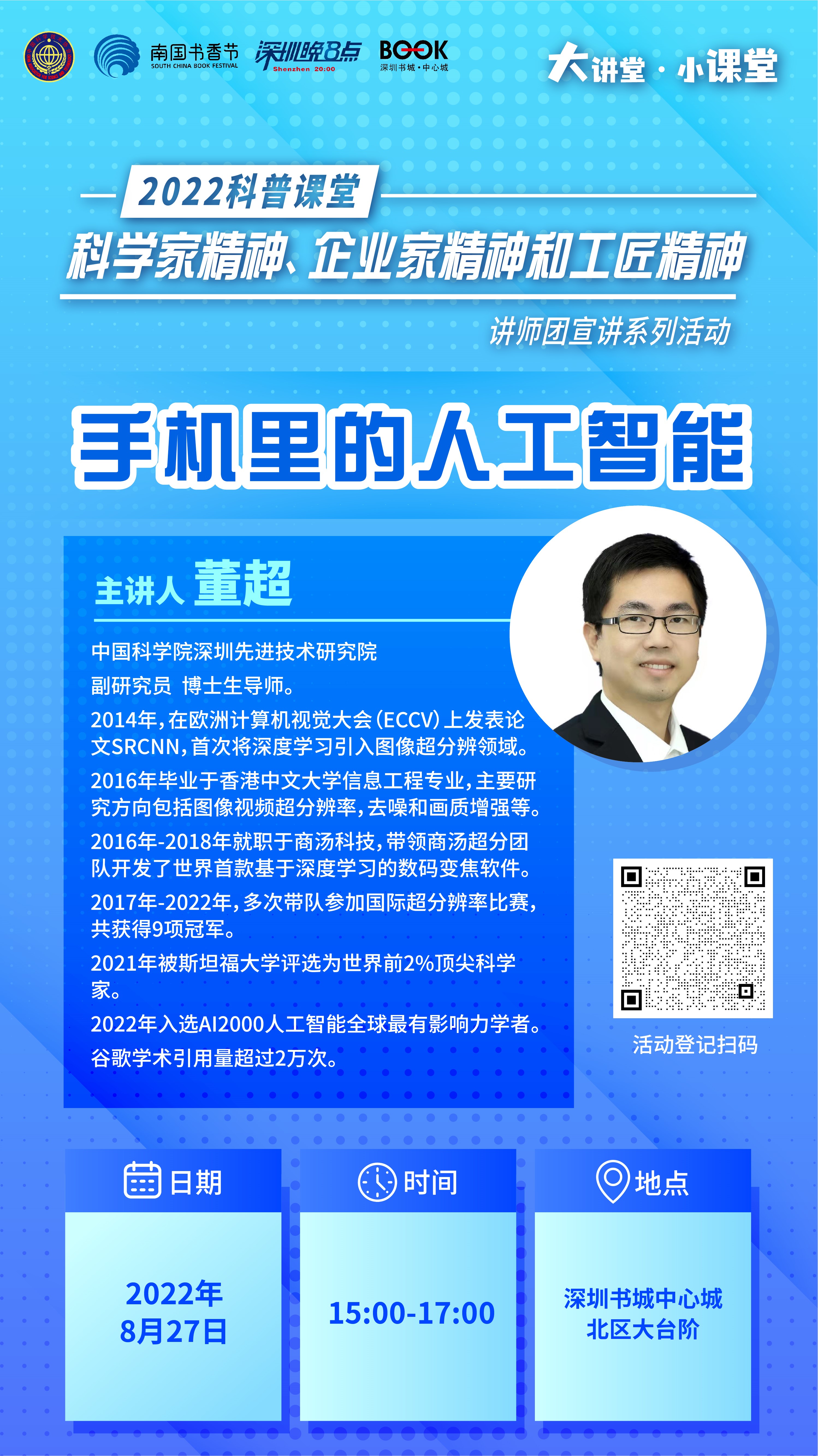 【講座嘉賓】董超 中國科學院深圳先進技術研究院副研究員 博士生導師