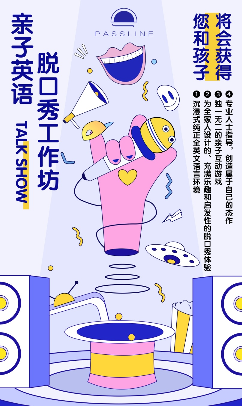 PassLine全新推出“英語親(qin) 子脫口秀工作坊”,為(wei) 您和孩子提供如下收獲: